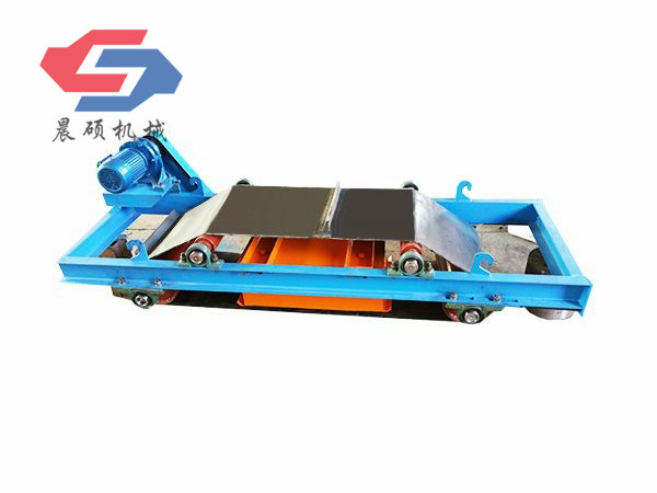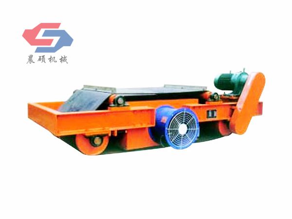 電磁除鐵器的基礎(chǔ)上增加了驅(qū)動電機、滾筒、帶刮板的缷鐵膠帶等組成的缷鐵機構(gòu)。在工作過程